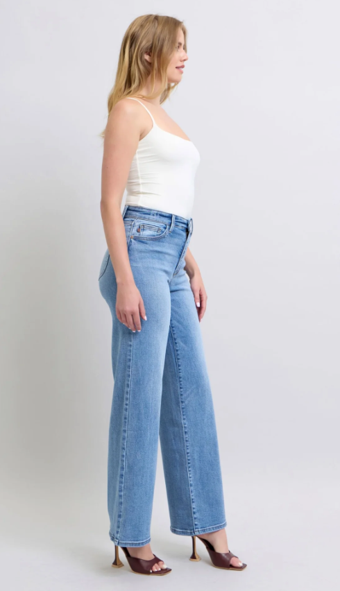High Waist Vintage Wash Retro Wide Leg Denim Jeans