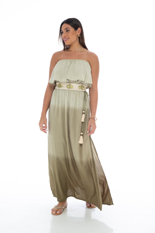 Sateen Maxi Skirt with Elastic Waistband and invisible zipper (Leo Light)