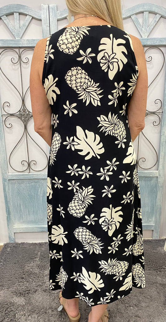 Black Tropical Midi Dress