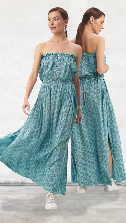 Blue Two Tone Strapless Jumper Romper