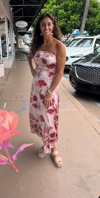 Ruby Red Sleeveless Square Neck Ruffle Lace Trim Midi Dress