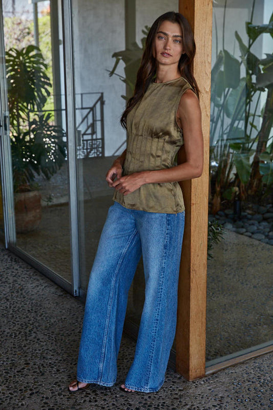 Pleated blouse top with flared sleeves & sweep (Mocha)