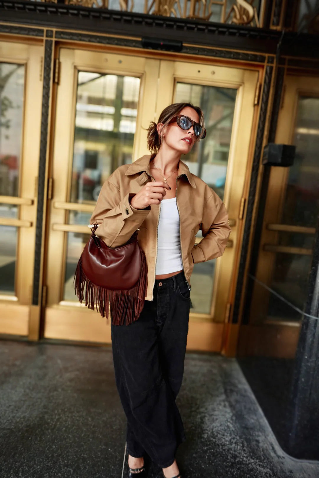 The fringe adds a sense of fun and movement—great for making your outfit feel more dynamic. This bag transitions easily from daytime casual to evening casual: pair it with jeans and boots, or with a flowy dress and statement jewelry. It’s a statement piece that still serves purpose without overwhelming.