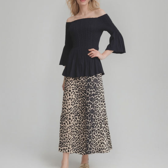 Pleated blouse off shoulder top with flared sleeves & sweep (Black)